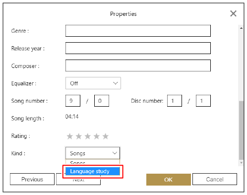 - Wenn der gesamte Inhalt der Playliste aus Sprachlerninhalten besteht, wird die Playliste in den Ordner „Learning“ auf dem Walkman übertragen.