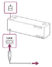 - Branchez l'adaptateur secteur (fourni) sur la prise DC IN 18 V du haut-parleur.