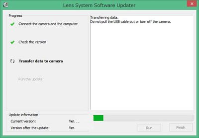 Si vous utilisez la série QX, lancez la mise à jour logicielle de l'objectif sur votre ordinateur et vérifiez la version du logiciel en exécutant la mise à jour.