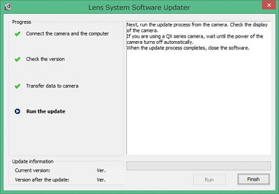 REMARQUE : si vous utilisez la série QX, lancez la mise à jour du logiciel système de l'objectif sur votre ordinateur et vérifiez la version du logiciel système en exécutant la mise à jour.