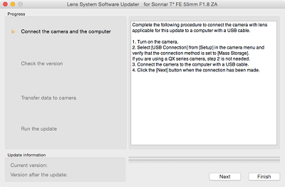 Remarque : fermez toutes les autres applications avant de procéder à la mise à jour du logiciel de l'objectif. - Autres éléments pour appareils photo à objectifs interchangeables α